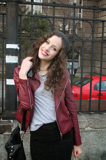 Hello, my dears. How you're handling with this crazy weather? Yesterday, when these photos were made, we came outside because of amazing sun, and it wasn't cold at all. But until we finished, rain started, cold came and we escape inside. Speaking of combination, I love playing with clothes and maybe the most putting some femininity pieces into boyish or rock combination. Same idea was in the last post where I made my combination with heels and baggy jeans. I think that's the way for making combination alive and you unusual and noticed. Especially if you wear this kind of things it will help to make you feminine. That's the task I gave this wonderful Zara skirt and I just could'n wait to show it on the blog. I am happy with idea to change short skirt with these below the knee, cause I love them. No matter if they are tight like this one or not, they are amazing and I think that's what catwalks also say. This jacked you could see HERE where I also combined skirt with a little bit rock pieces. Let your imagination to do its job and you will surely make some combination like this one. :)